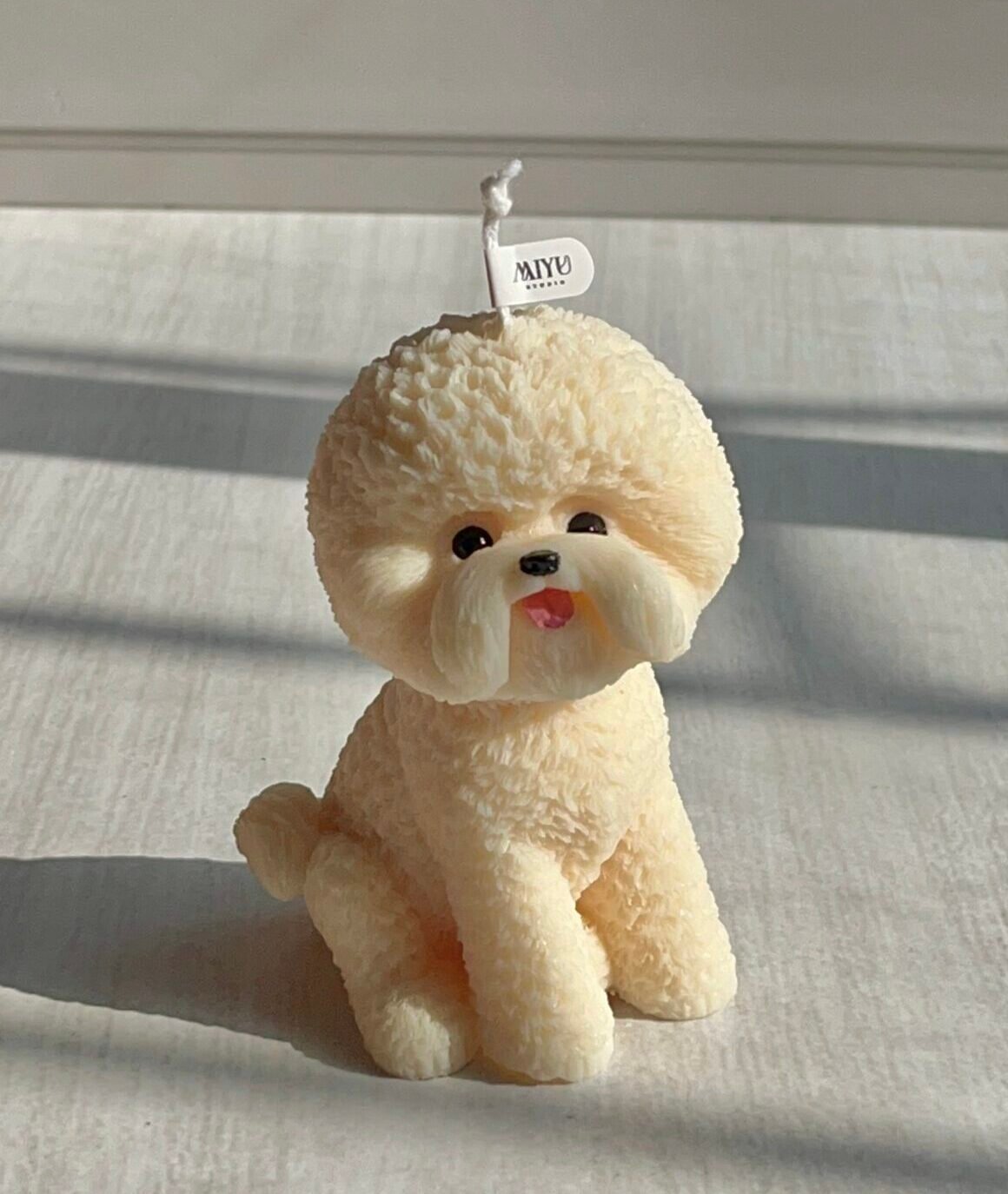 Vela decorativa Bichón Frissé – Hecha a mano en Perú con cera de soja y aroma europeo